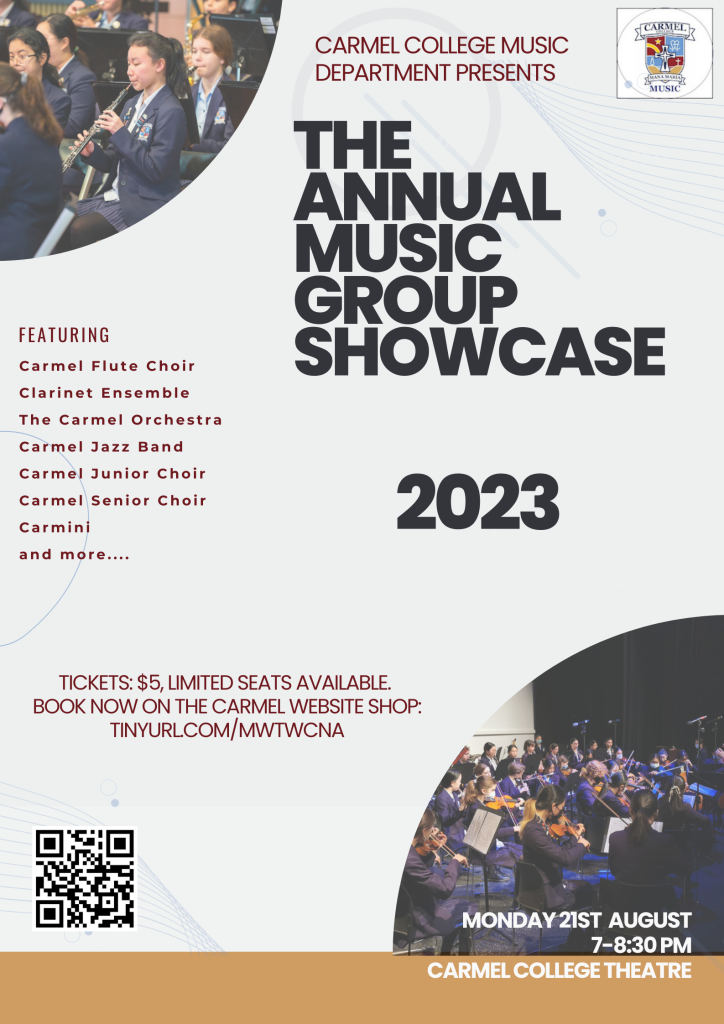 The Carmel Music Department showcase is coming up on Monday 21 August, 7.00pm.
