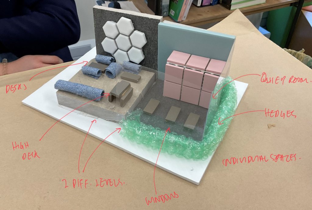 The students toured the Architects’ offices, listened to the career pathways of three architects and then participated in the design workshop. The workshop was split into three different activities – brainstorming, research and model making, all of which enabled the students to become engaged in a process of design. The workshop was centred around the concept of ‘classroom breakout space’ and unpacked existing attitudes towards breakout space and uncovered what a ‘cool’ and ‘desirable’ breakout space might look like in the new teaching block.