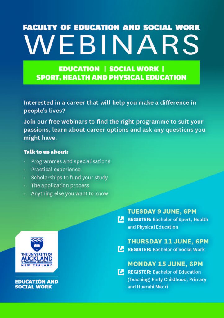University of Auckland – Education/Social Work/Health & Physical Education – Webinars