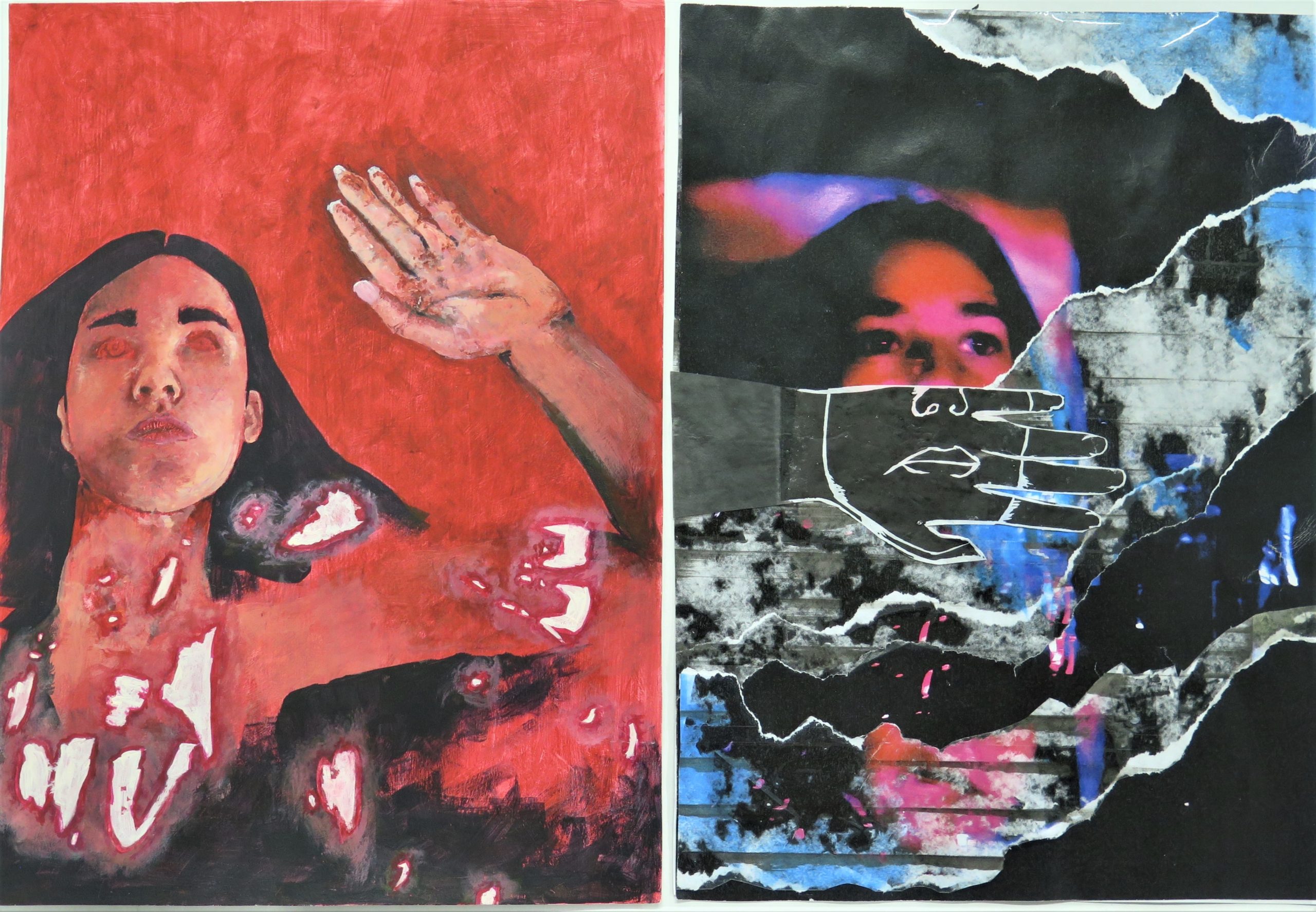 Two students from participating High schools were nominated by their Art teacher to attend. Poppy Collis and Sophie Farrand from Year 12 Painting represented Carmel College along with Ms Miller at the evening. See photos of the students and the artwork they submitted for the event.