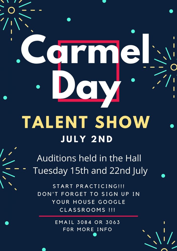 Once again the Carmel Day Talent Show will be on Friday, 2 July! Do you have a talent you’d like to perform during Carmel Day?