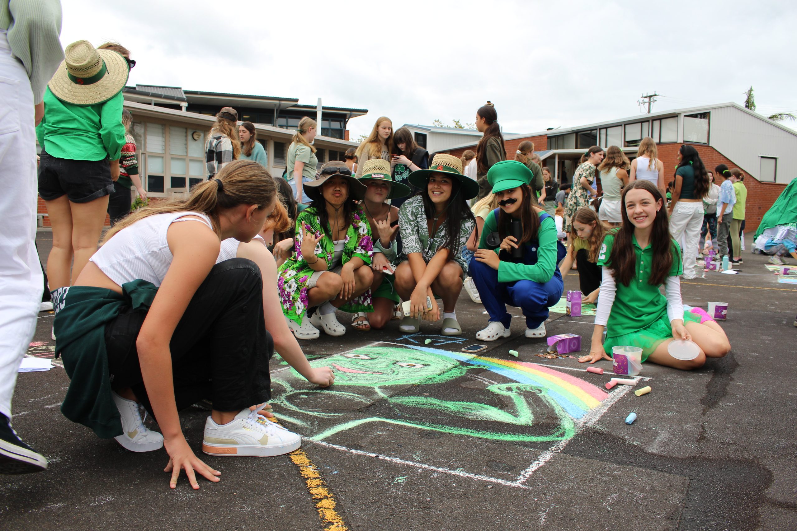 On 17 March, we held our annual school Coin Trail in celebration of St. Patrick’s Day.  After weeks of fundraising within Atawhai, the students and teachers had the opportunity to get involved by dressing up in their brightest green and taking part in an Atawhai chalk design and photo competition that illustrated the core Mercy value of 2023, Courage (Maia).