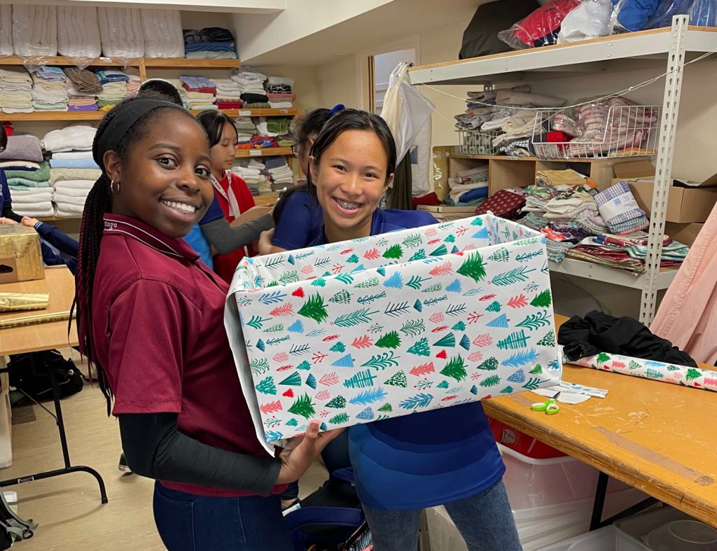 Girls pictured above are helping prepare for Christmas at de Paul House.