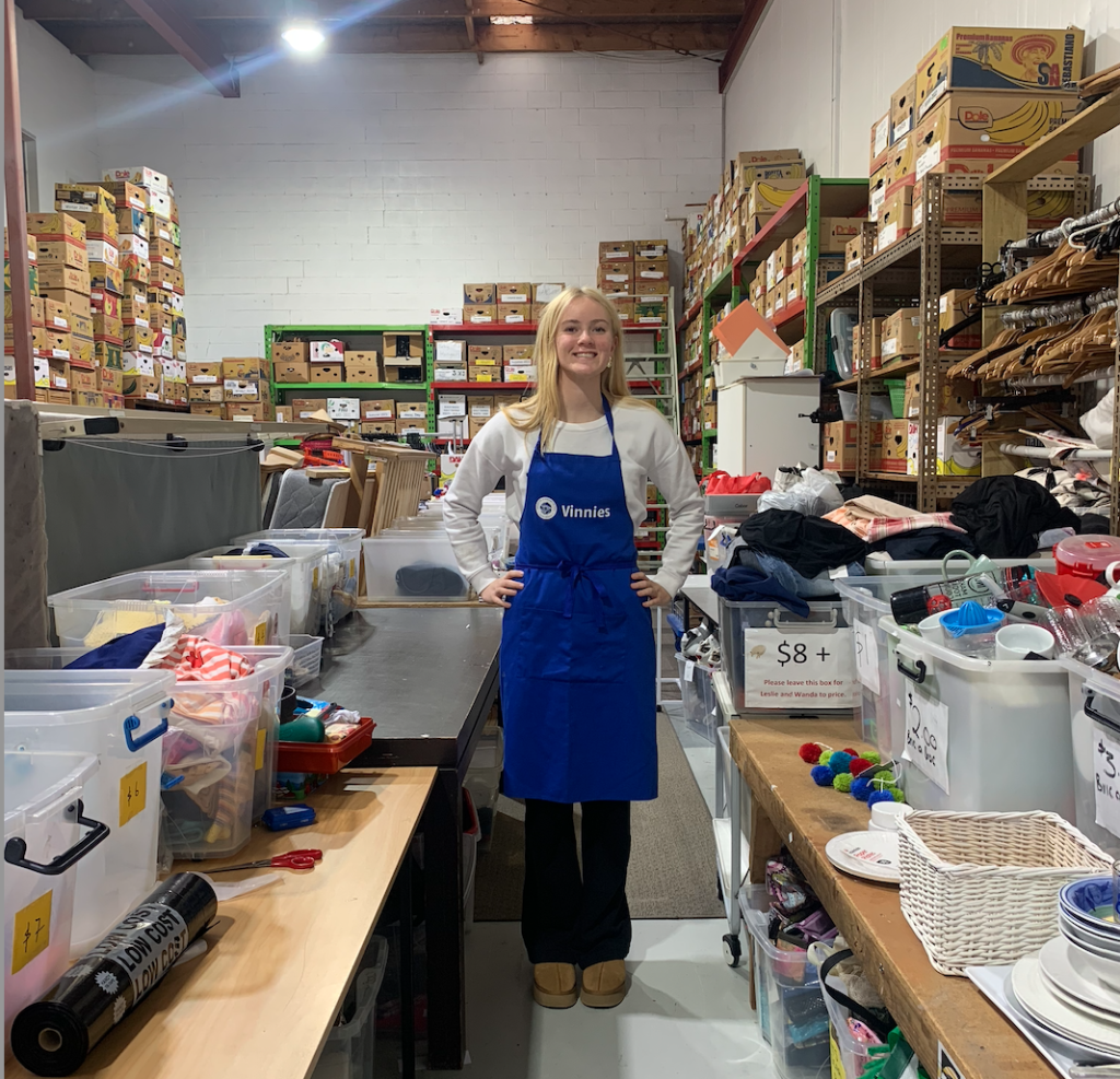 Pictured above is Lily (Year 12) who wrote “…Our work at the Vinnies op shop allowed us to directly support a charity that helps people who are struggling and facing economic hardships. Pricing items, organising clothing and maintaining the shop’s cleanliness ensured that people from disadvantaged backgrounds could access the necessities with dignity.”