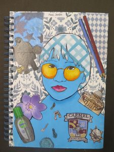 Year 10 students have just finished their self-portraits on book covers. Students worked in the style of ex Carmel student (Alumni) and famous Auckland artist, Sam Mitchell, to create these self-portraits surrounded with images relating to their interests and future aims.