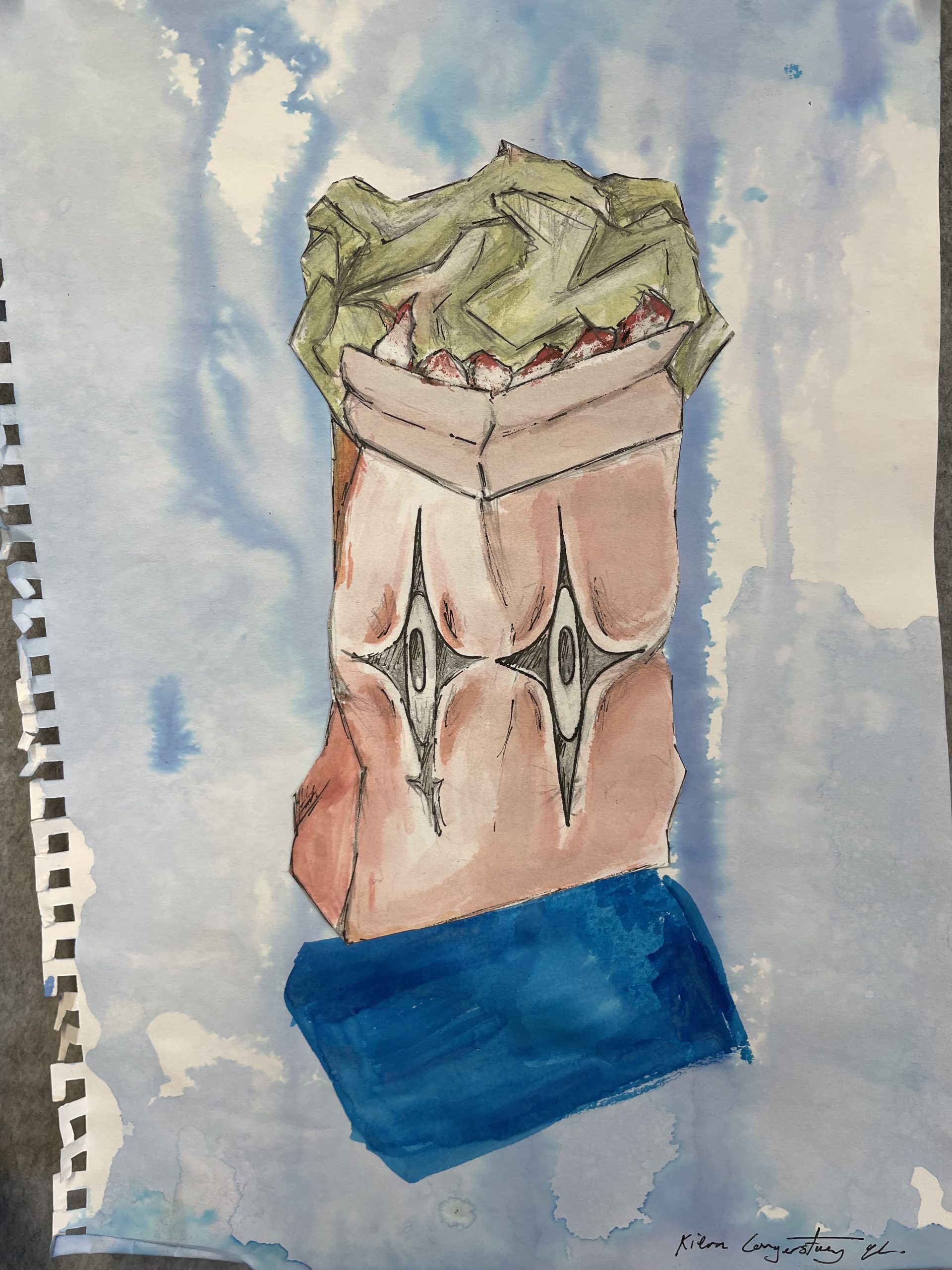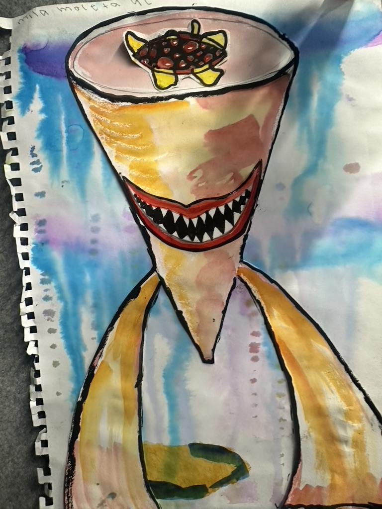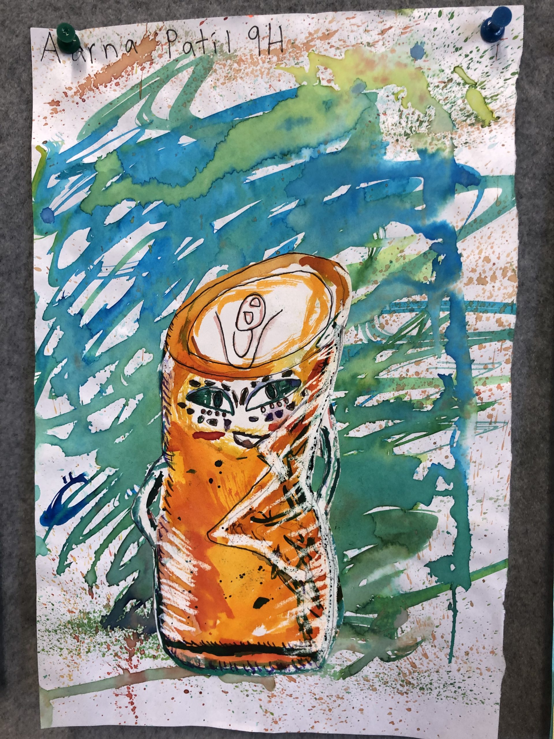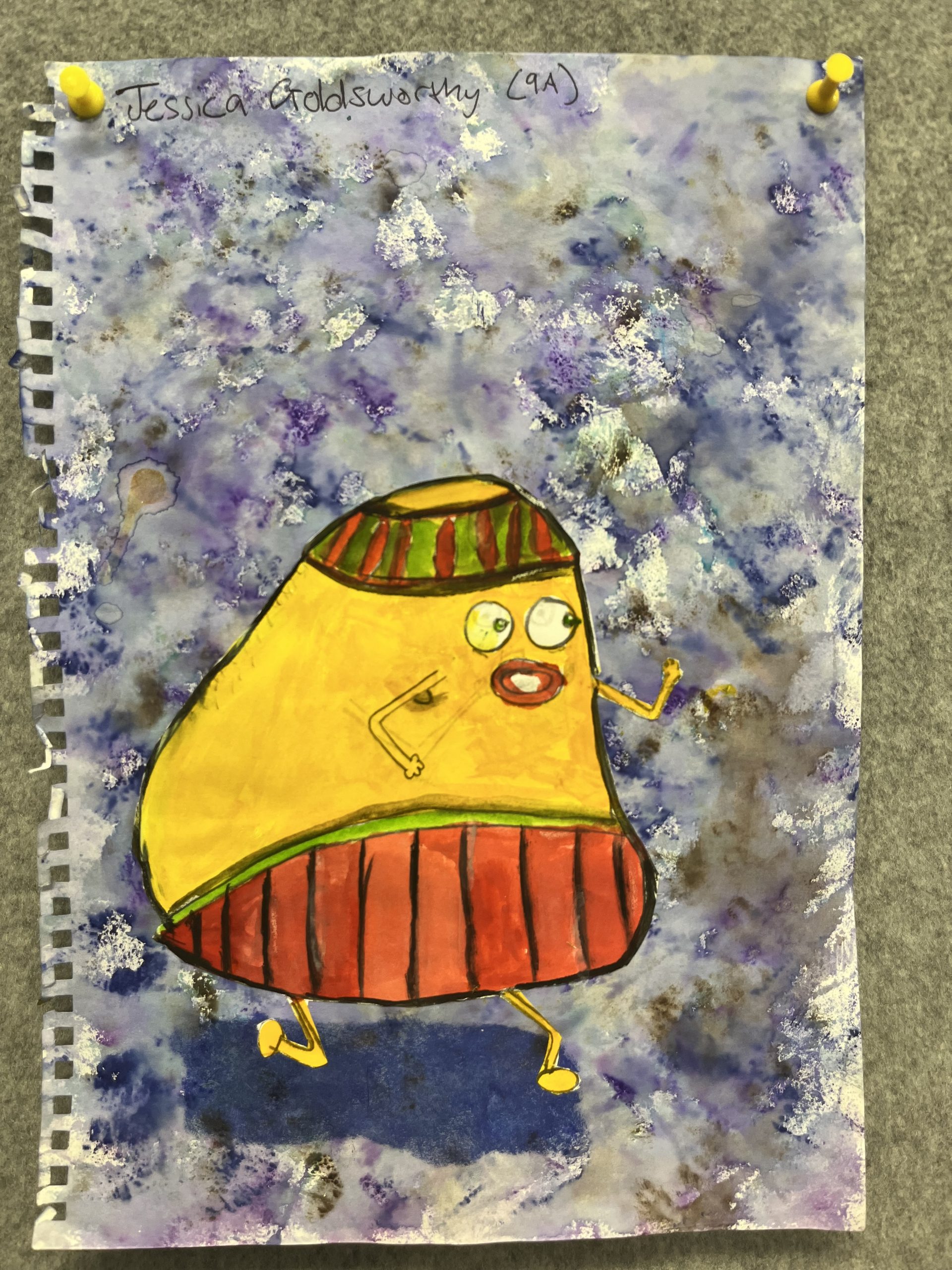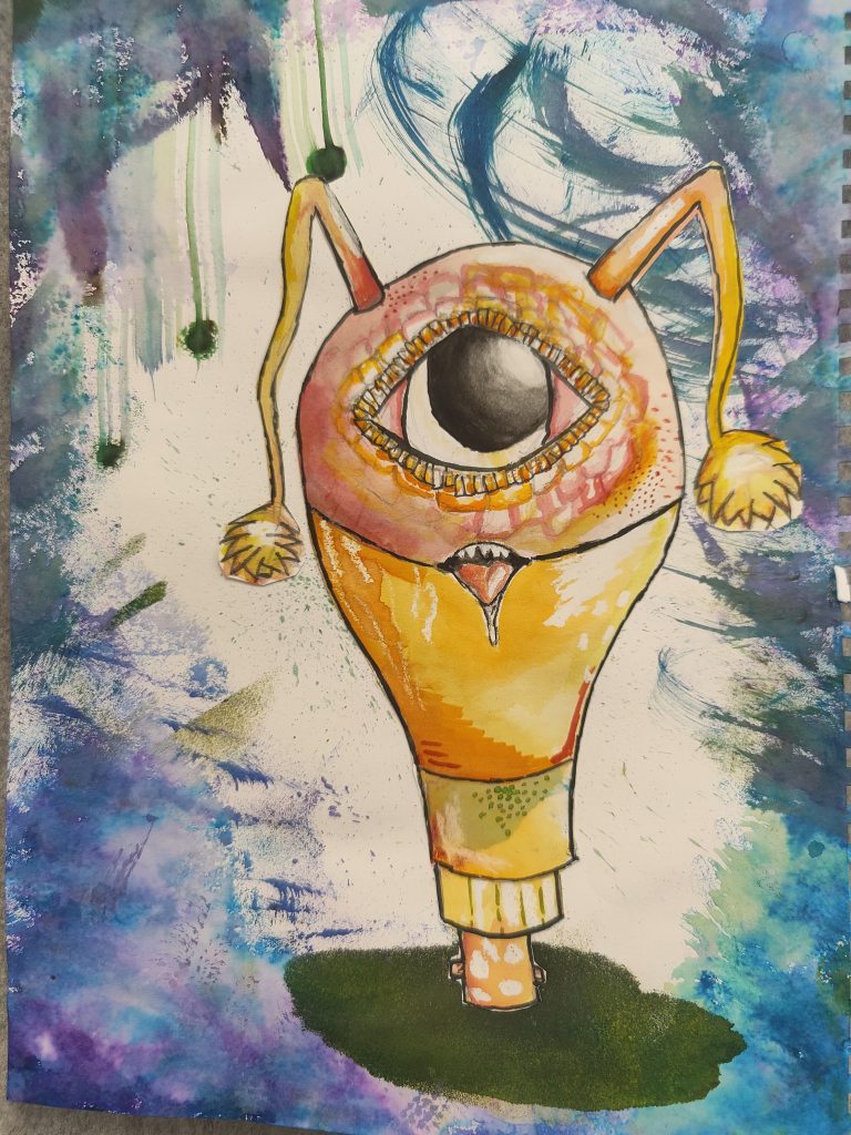Year 9 Art students were asked to turn a drawing of a piece of packaging or rubbish item into a character. These imaginative ‘futuristic’ figures were based on the work of American artist, Jeff Soto.