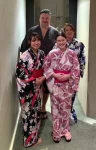 Pictured here and above are the Wolfe family with Yuki wearing kimonos which were sent from Yuki’s mother along with other gifts sent in appreciation for the experience the family are giving her daughter.