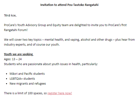 ProCare established a Youth Advisory Group to help provide guidance based on lived experiences, to help us improve health outcomes for children and young people.