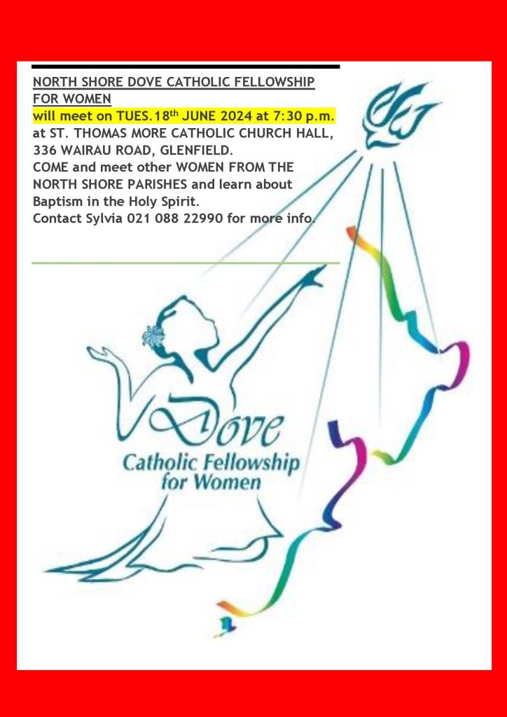 Invites all women to join us on Tuesday 18 June at 7.30pm at St. Thomas More Catholic Church hall, 336 Wairau Road, Glenfield.