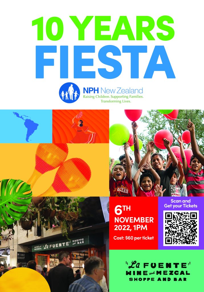 Come and celebrate this important milestone at the 10 Years Fiesta – 1.00pm, 6 November at La Fuente in the city. Tickets $60 each. More info at www.nph-nz.org/events