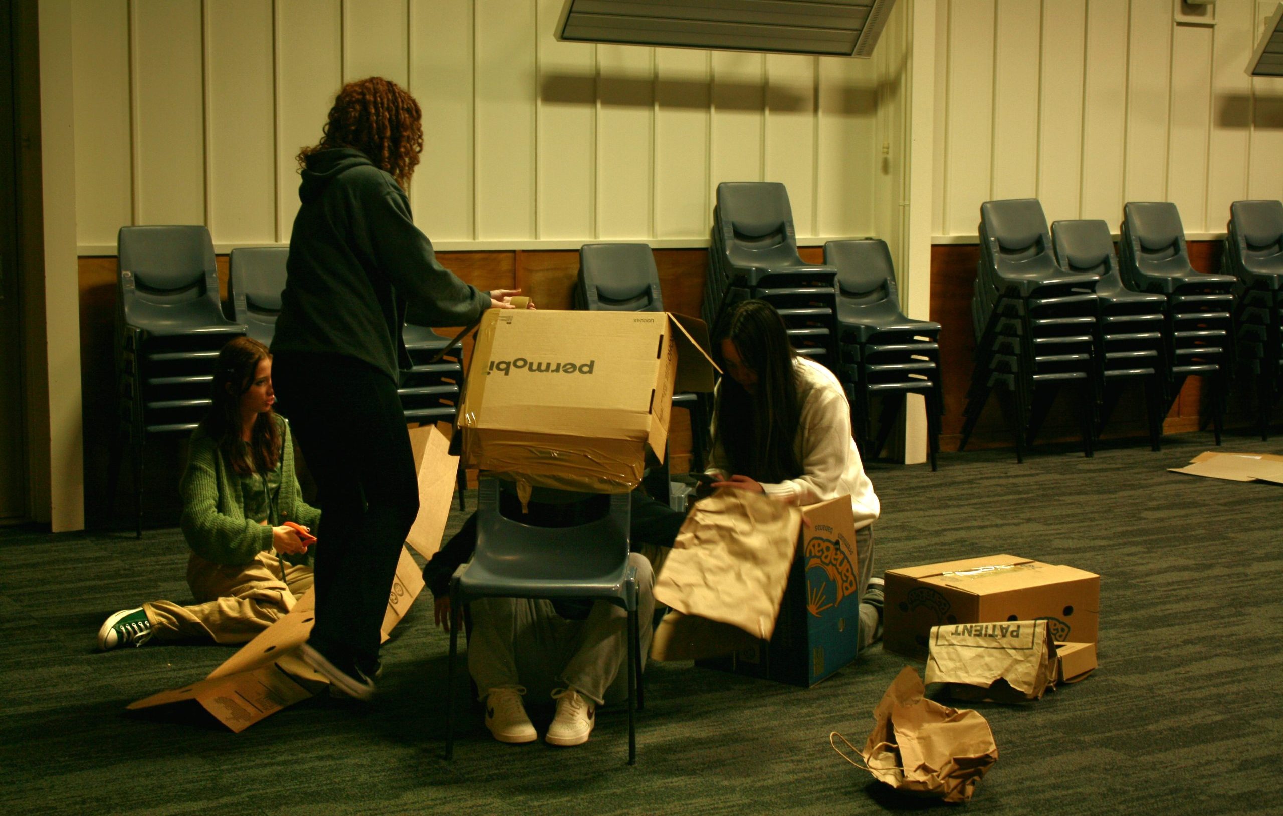 It was a fun and jam-packed night with four main rotational workshops.  First was the obstacle course, which illustrated the challenges people face when trying to access sufficient food, water and education in Papua New Guinea and Timor-Leste.  Second was the “Mix and Match” activity, which helped students gain a better understanding of Caritas’ Ethical Principles and values.  Third was a Bible search, where students explored various biblical themes related to social justice and compassion.  Lastly, we ended the night with a hands-on shelter-building challenge.  Using cardboard, students creatively constructed the safest and most durable homes, showcasing the resourcefulness needed in real-life situations.