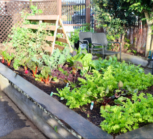 The service garden is located behind the food tech classrooms and includes a variety of fresh herbs and veggies that, when harvested, go straight to the local food bank. There is a roster system where students volunteer time and log hours or hours during the holidays.