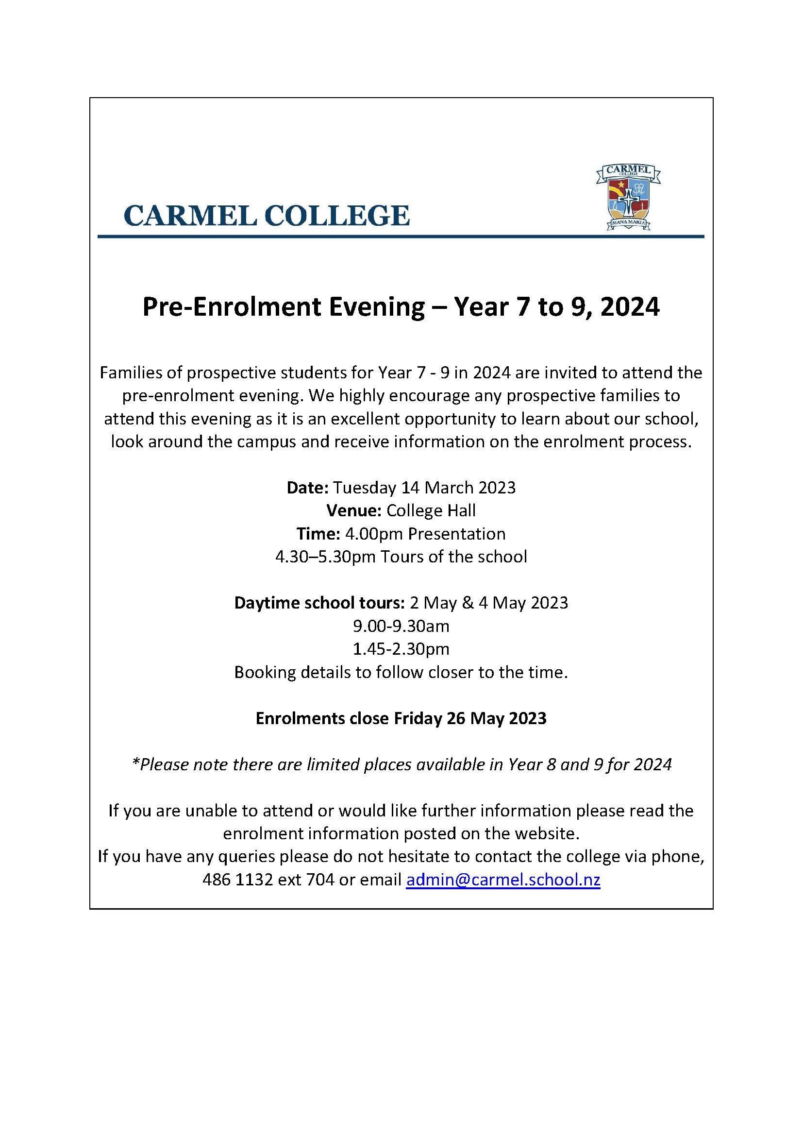 Carmel College Whānau Hui