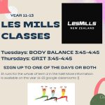 YEAR 10-13! There are now FREE Les Mills classes available to get involved in.