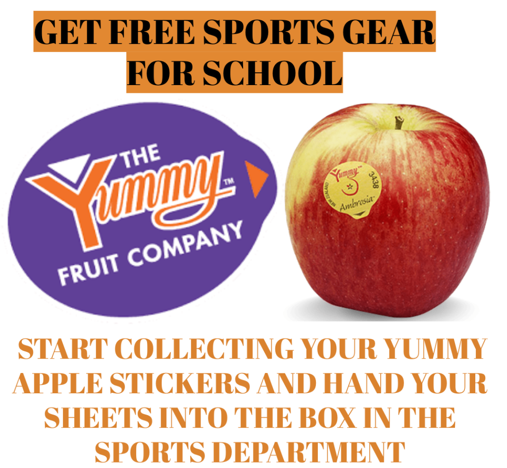 Carmel College is involved in the Yummy Apple sticker collection for free sports gear for the end of the year.
