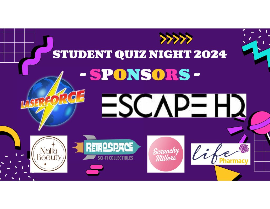 The Student Quiz Night 2024 is going Retro this Friday and we would like to say a big Thank You to all our fabulous sponsors for helping us make this event even more groovy.