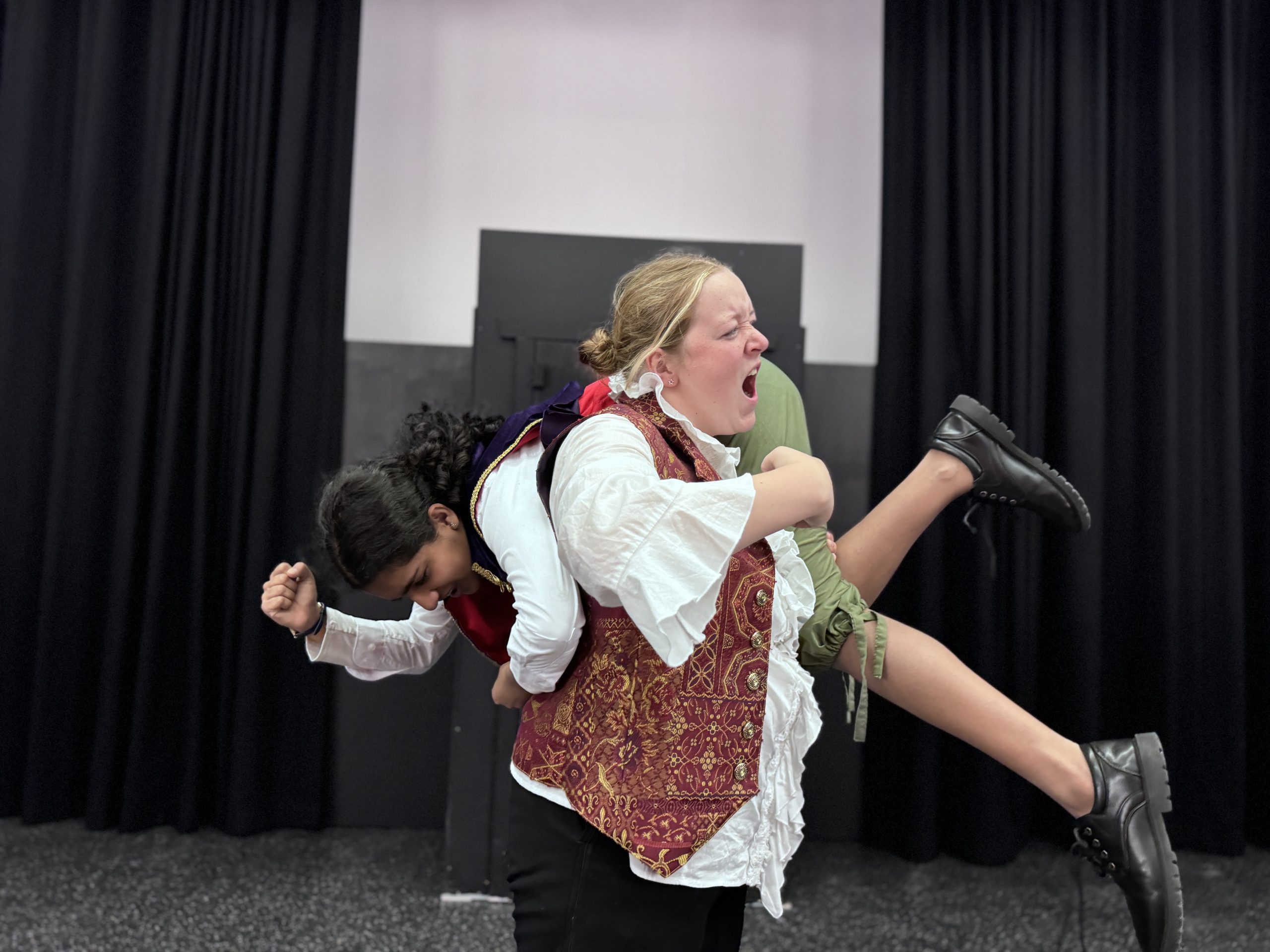 This term Year 11 Drama students are performing a shortened version of The Comedy of Errors by William Shakespeare. This is a slapstick comedy filled with beatings, arguments, food fights and much confusion.