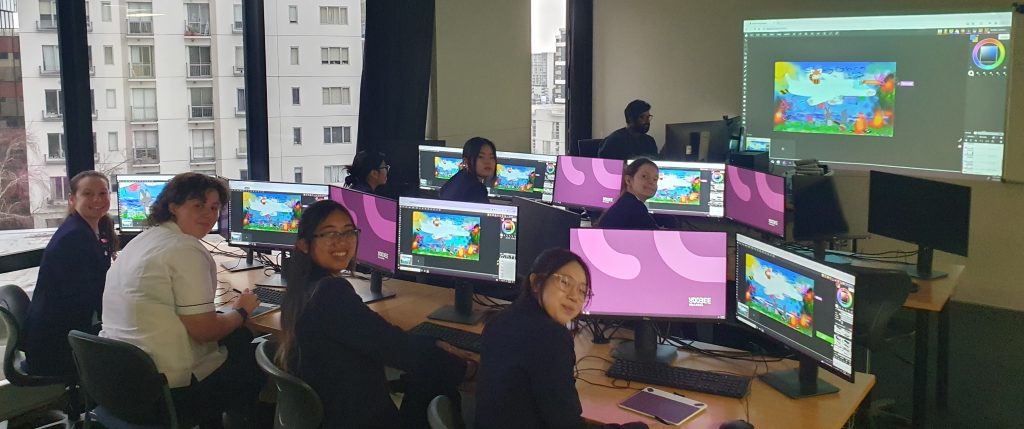 Recently, seven NCEA Level 2 Digital Technologies students had the opportunity to visit the Yoobee College campus in the city. They spent the day further developing their animation skills using Adobe After Effects. The course allowed the students to have a go at applying the 12 animation principles to enhance their animation’s fluidity, e.g. squash and stretch, anticipation and pose to pose.
