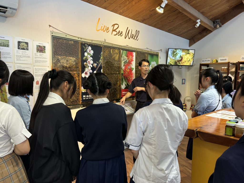 The Japanese girls went on a school trip to Sheepworld where they made butter, hand-fed farm animals and watched a sheep-shearing and farmdog show. We then made our way to a honey centre to learn about the bees, see them busily working in their hives and sample some honey.