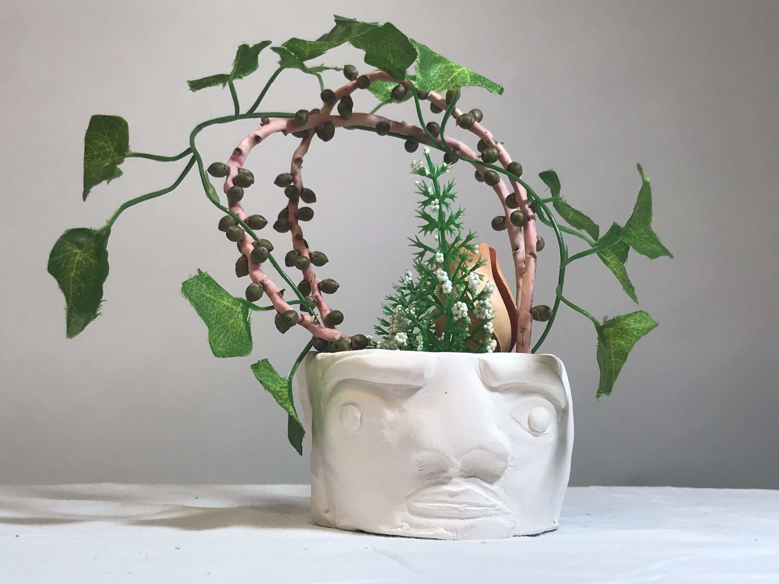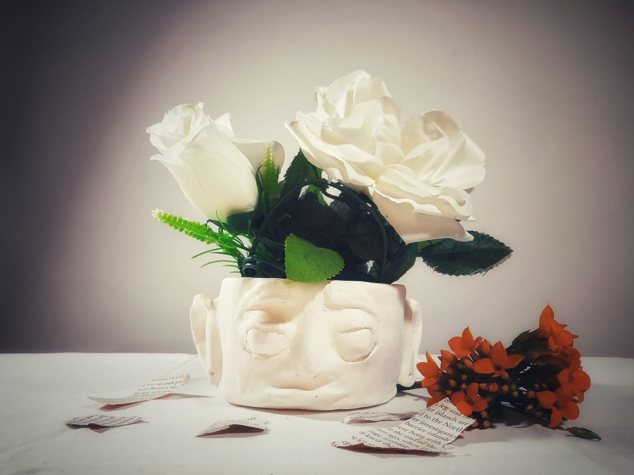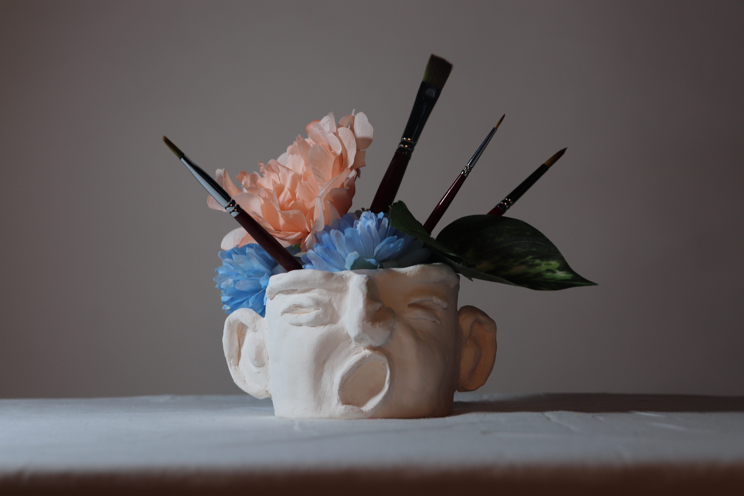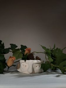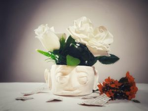 The Year 10 Art classes worked with visiting photographer, Aimee MacMillan, over three lessons in Term 2 to produce a photo based on the work of NZ photographer, Emma Bass (photo above). This followed a project where students made a vase with a face from clay which was fired. Students used their ceramic sculpture vases as the basis of their arrangement.