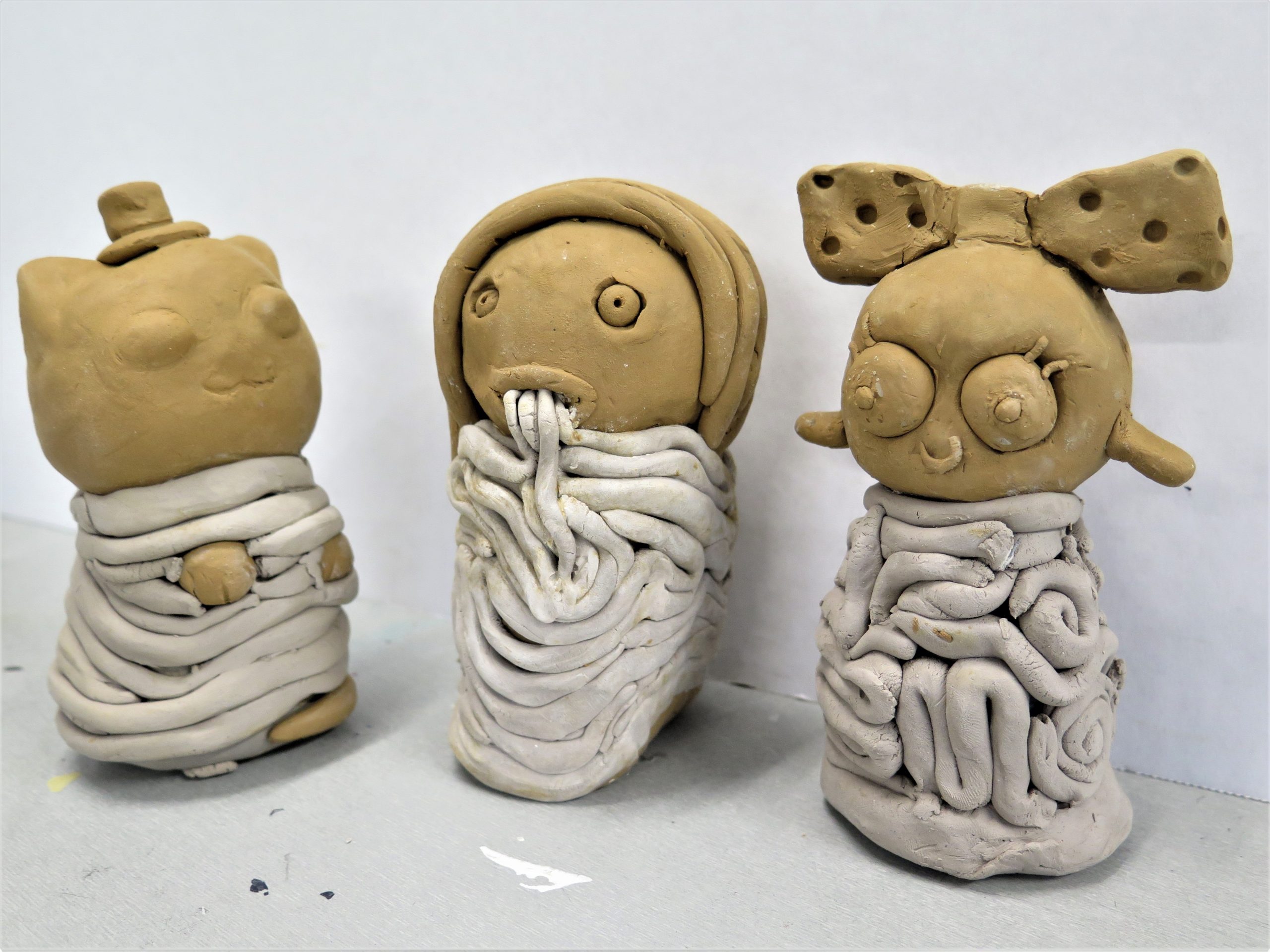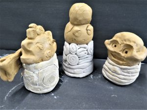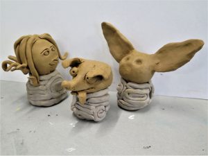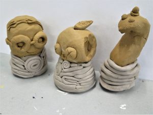 The Year 9 Art classes have recently got their ceramics back from the kiln. Here are some examples of their fantastic work. The brief was to make a sculpture of their favourite character using red and white clay. The body of the character needed to be encased in a coil. Well done to these students.