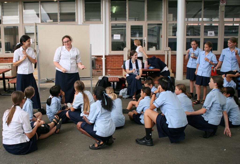 On 1 April, the Heads of Council ran the first Year 7&8 lunchtime activities of the year. These lunchtimes are aimed to increase the sisterhood among the younger years to allow them to create meaningful, wider connections with their cohort. It was a successful time with high participation and much enthusiasm. By incorporating a fun, yet challenging lunchtime, everyone got to step out of their comfort zone for a friendly competition with many physical and mental challenges designed to work together in a safe and encouraging environment. The challenge consisted of a relay race, physical team bonding activities, caption that meme, and real or fake food in theme for April Fools.
