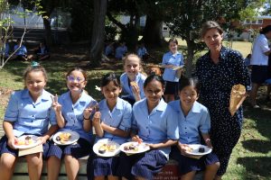 All the Year 7s and student leaders gathered near the labyrinth to have a shared lunch. There was so much food! The leaders of each house gave us a Welcome Pack. Inside the Welcome Pack were two sunflower seeds symbolising that when they grow we will grow with them, a message from the Head Girls giving us a few tips, hair ribbons with our school colours and an awesome shared lunch with some games included.