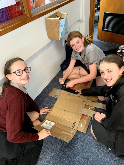 In Social Studies this term, we have been learning about sustainable fashion and the repercussions of the ‘Fast Fashion Industry’. As part of this we have been given a challenge to make an eco-fashion garment. The categories for this challenge are; Sci-fi, Art, Evening Wear and Day Wear. We have been asked to create our garments using only recycled materials and deadstock from a range of sources. We are required to think about all the resources we are using, including hot glue guns, sewing machines and thread, We are all working in groups to create our masterpieces. We have been required to follow a process of designing, experimenting and creating.This has pushed us to problem solve collaboratively and think outside of the box to come up with solutions.