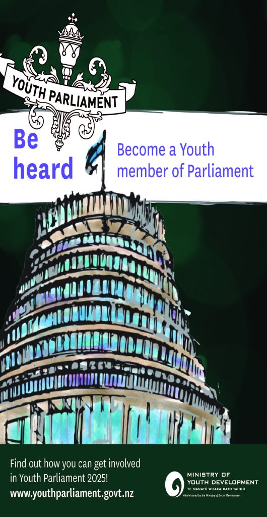 For more information please go to www.youthparliament.govt.nz , and see attached two letters inviting students to apply from Hon Simon Watts HERE and Labour List MP, Shanan Halbert HERE.